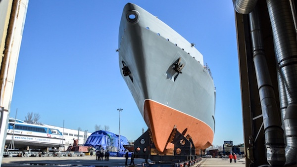 Новый корабль противоминной обороны «Лев Чернавин» готовится к спуску на воду