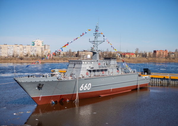 Вице-адмирал Игорь Мухаметшин поздравил участников церемонии от имени главкома ВМФ России адмирала Николая Евменова, отметив превосходные характеристики кораблей проекта 12700 и тот факт, что эти корабли успешно показали себя, выполняя задачи по предназначению.