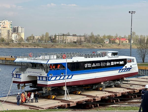 27 апреля 2023г. в Северной столице спустили на воду первый скоростной пассажирский катамаран «Форт Кроншлот» проекта 04580 («Котлин»). Он предназначен для перевозки посетителей музейно-исторического парка «Остров фортов».