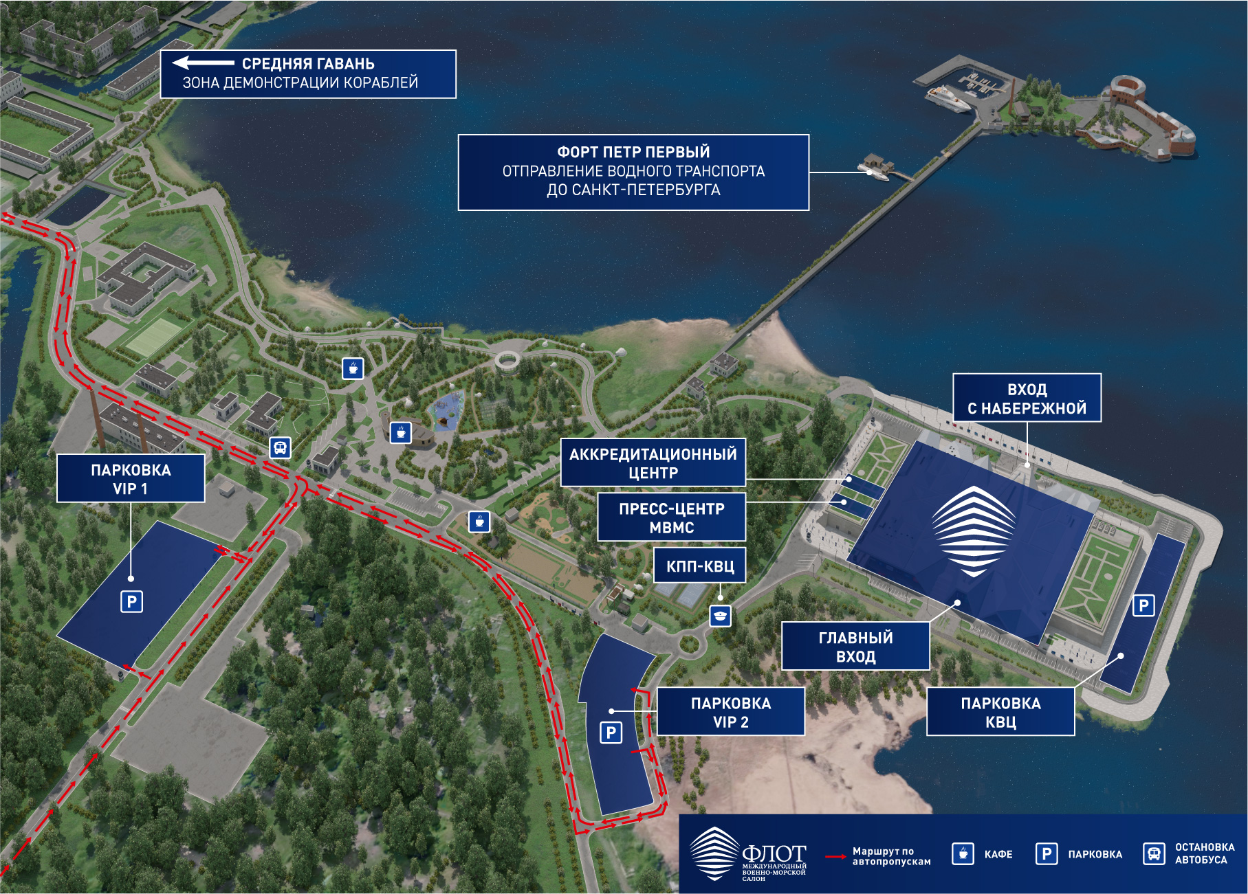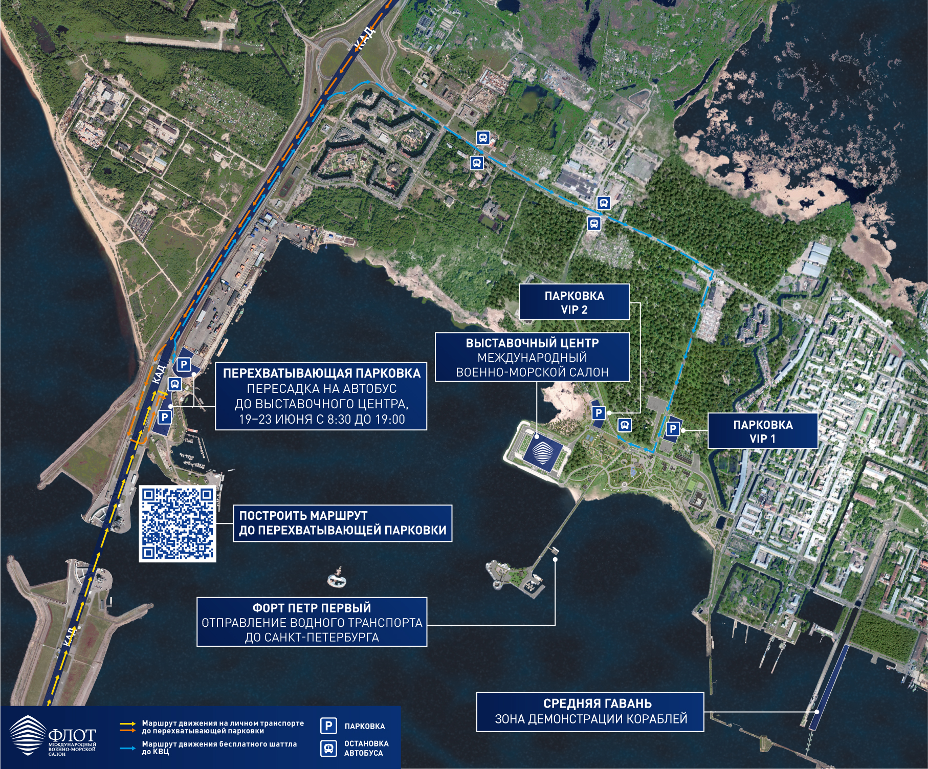 На личном транспорте Вы можете добраться до перехватывающей парковки, откуда будет следовать бесплатный шаттл до КВЦ.